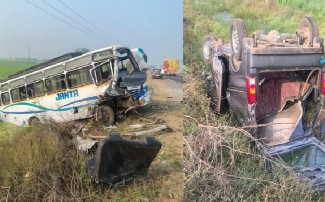 मध्य प्रदेश के भिंड जिले में राष्ट्रीय राजमार्ग-719 पर गोहद थाना क्षेत्र के छींमका गांव के पास तेज रफ्तार बस और ईको वैन की आमने-सामने टक्कर में पांच लोगों की मौत हो गई, जबकि छह लोग गंभीर रूप से घायल हो गए। यह हादसा शनिवार तड़के करीब 4 बजे हुआ जब बारात छोड़कर ग्वालियर लौट रही बस की सामने से आ रही वैन से जोरदार भिड़ंत हो गई।